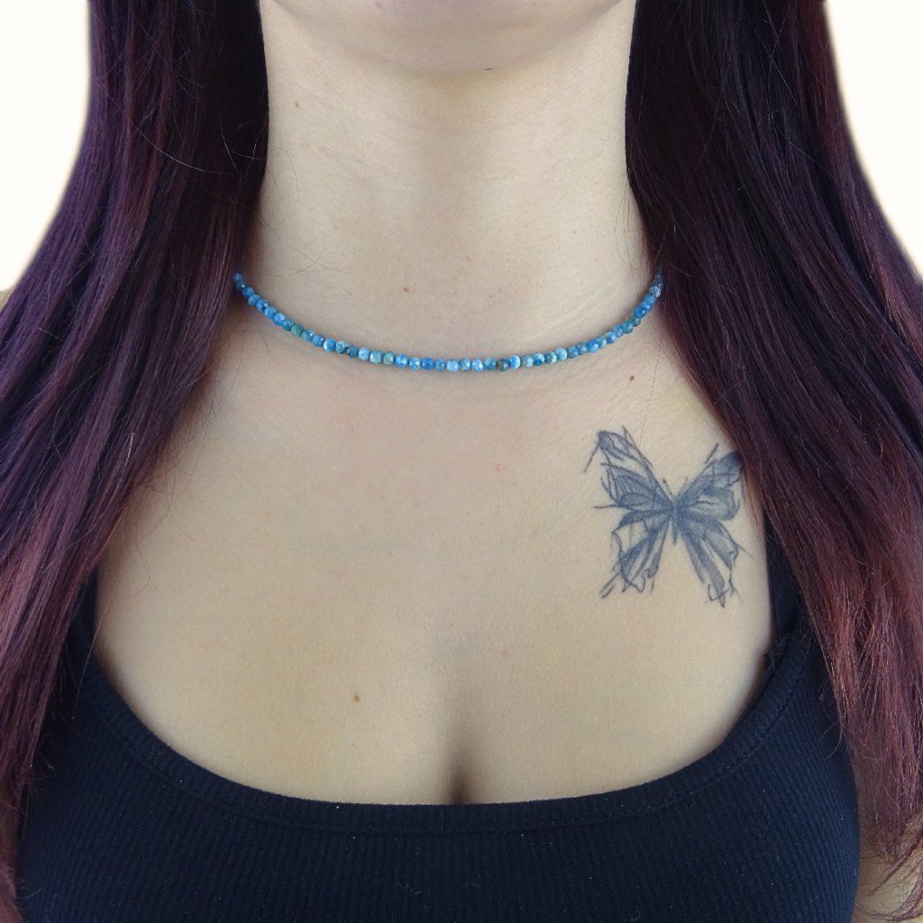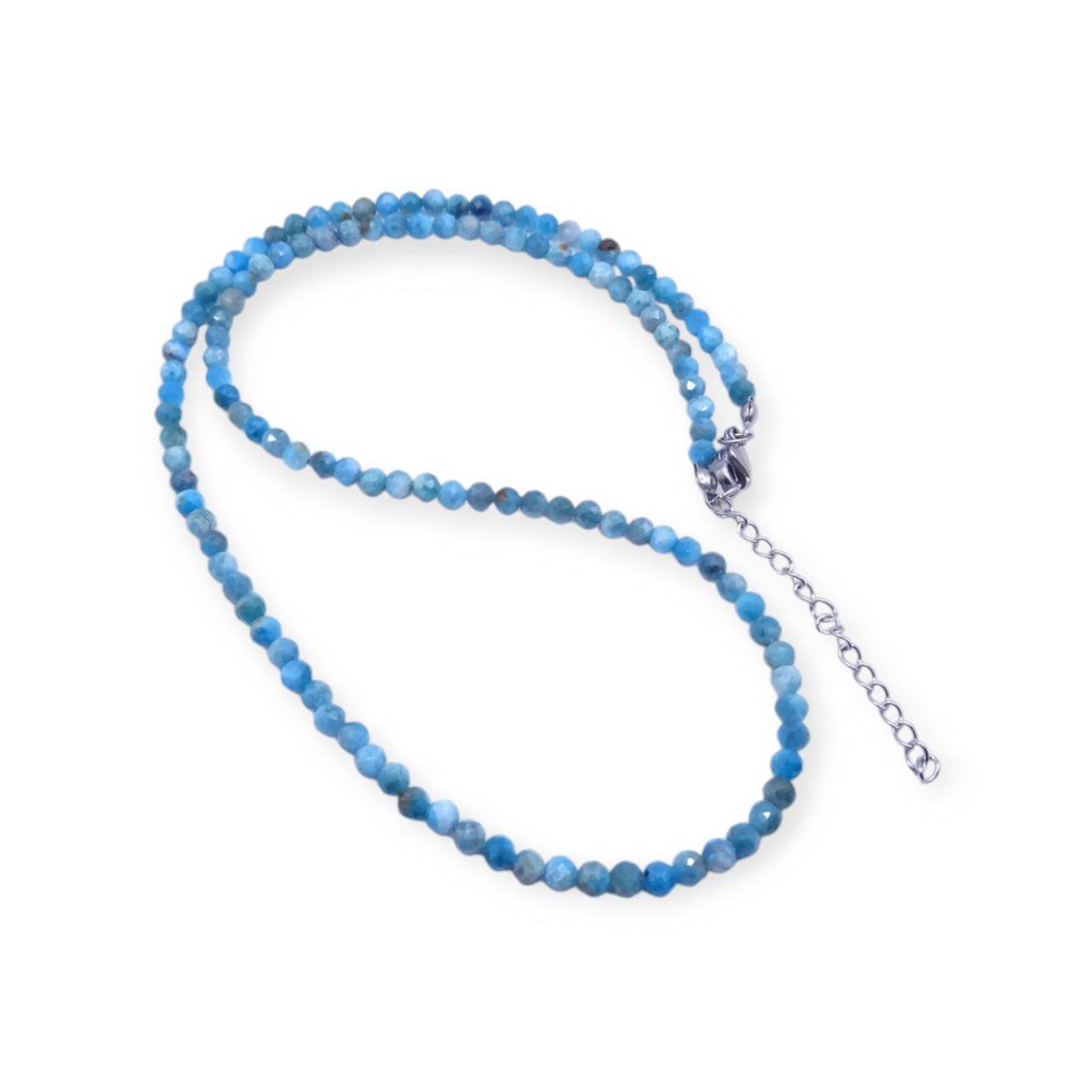 Jemný, ženský a velmi elegantní dámský náhrdelník z broušeného modrého apatitu okouzlí svou přirozenou krásou a jemnou energií 💙