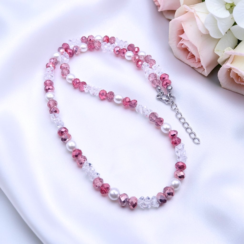Elegantní, zářivý a velmi stylový dámský náhrdelník Aura – Ruby Glow okouzlí svou výraznou krásou a jemným třpytem ✨❤️. Kombinace červených broušených korálků, bílých perliček a křišťálových prvků vytváří harmonický šperk, který působí luxusně, ženskě a nepřehlédnutelně.
