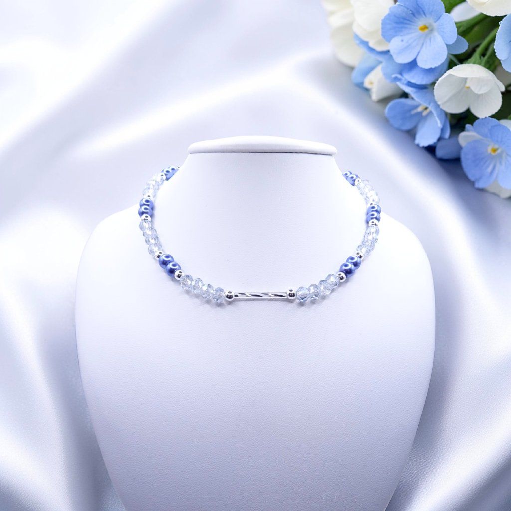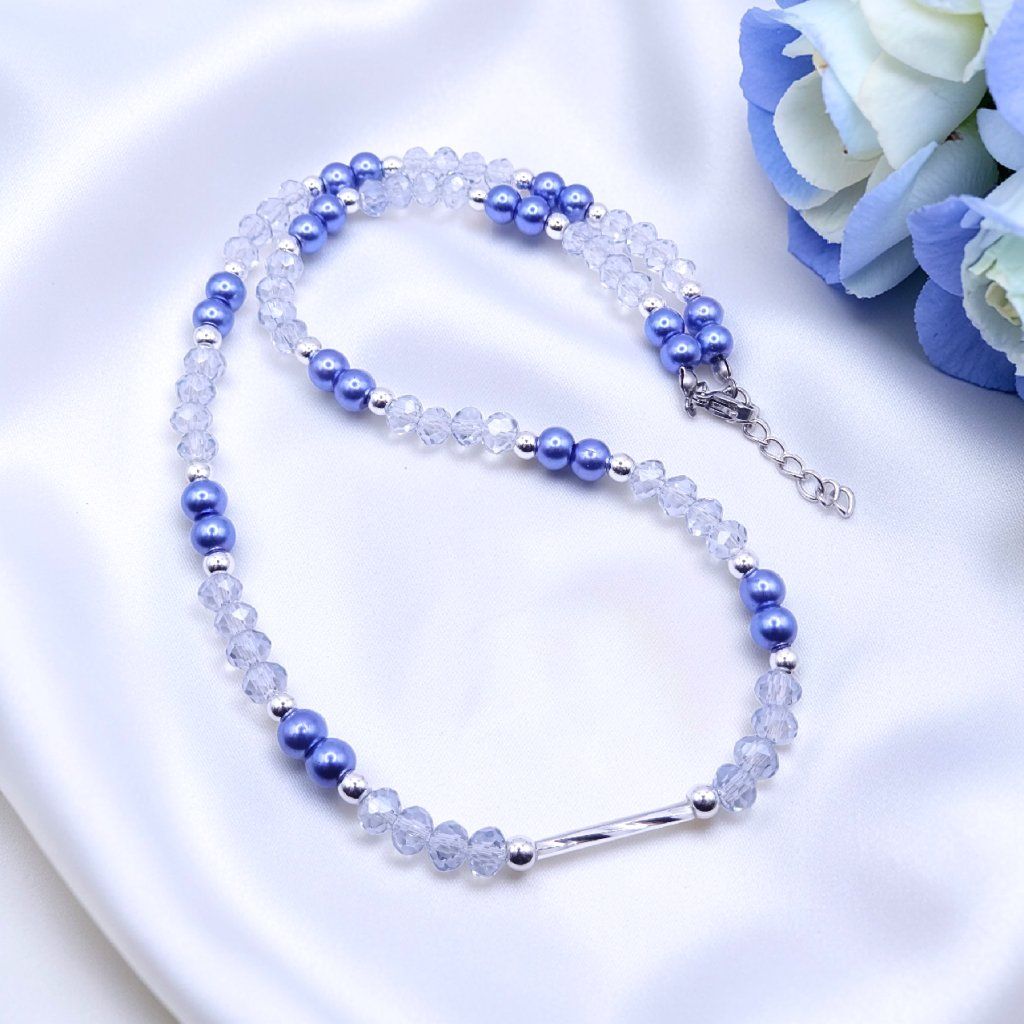 dámský náhrdelník, modrý náhrdelník, elegantní náhrdelník, náhrdelník z jabloneckého skla, perličkový náhrdelník, jemný dámský náhrdelník, třpytivý náhrdelník, minimalistický náhrdelník, náhrdelník AURA, náhrdelník Sky Glow
