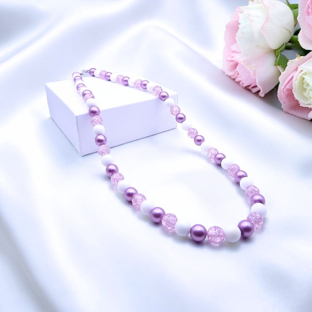 Jemný, ženský a velmi elegantní dámský náhrdelník BEAUTIFUL GARDEN z kolekce ELEGANCE okouzlí svou romantickou barevnou harmonií a lehkým, svěžím dojmem 💗🤍. Kombinace růžových praskaných korálků, bílých korálků a růžových matných perliček působí něžně, čistě a nadčasově.