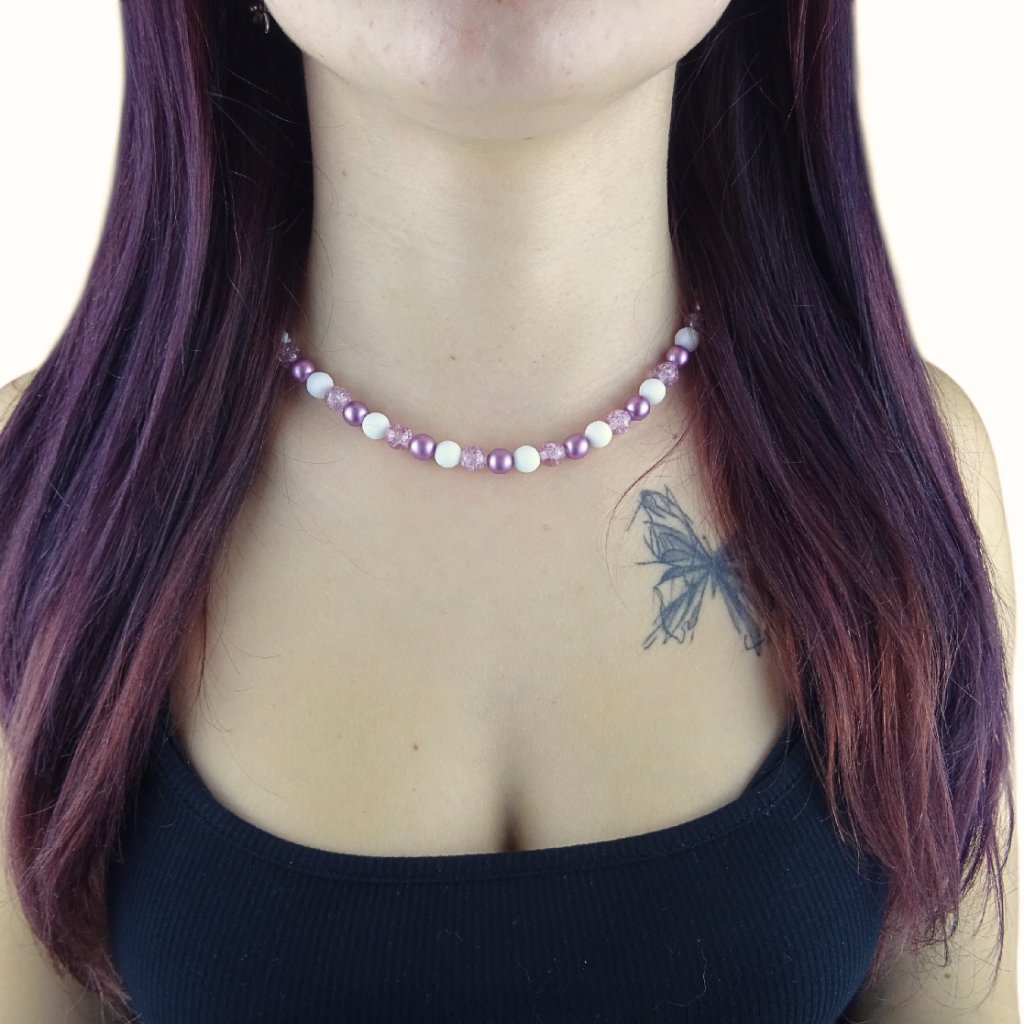 Díky ruční výrobě a použití jabloneckého skla se mohou odstíny růžové, struktura praskaných korálků i mat perliček jemně lišit, což dodává šperku jedinečný a osobitý charakter ✨.