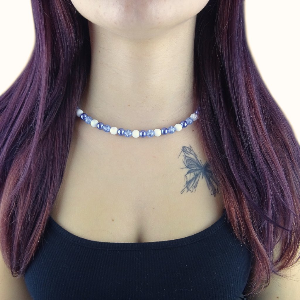 Jemný, ženský a velmi elegantní dámský náhrdelník HELENA z kolekce ELEGANCE okouzlí svou něžnou kombinací modrých praskaných korálků, bílých korálků a modrých perliček 💙🤍. Barevná harmonie působí svěže, lehce a romanticky, díky čemuž je tento náhrdelník ideálním doplňkem pro ženy, které milují jemnou eleganci.