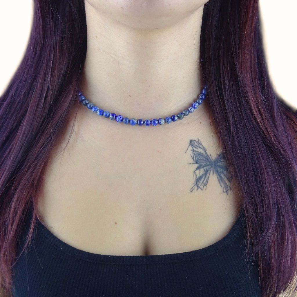 💙 Jemný, ženský a velmi elegantní dámský náhrdelník z lapisu lazuli okouzlí svou hlubokou tmavomodrou barvou, která připomíná noční oblohu posetou hvězdami ✨