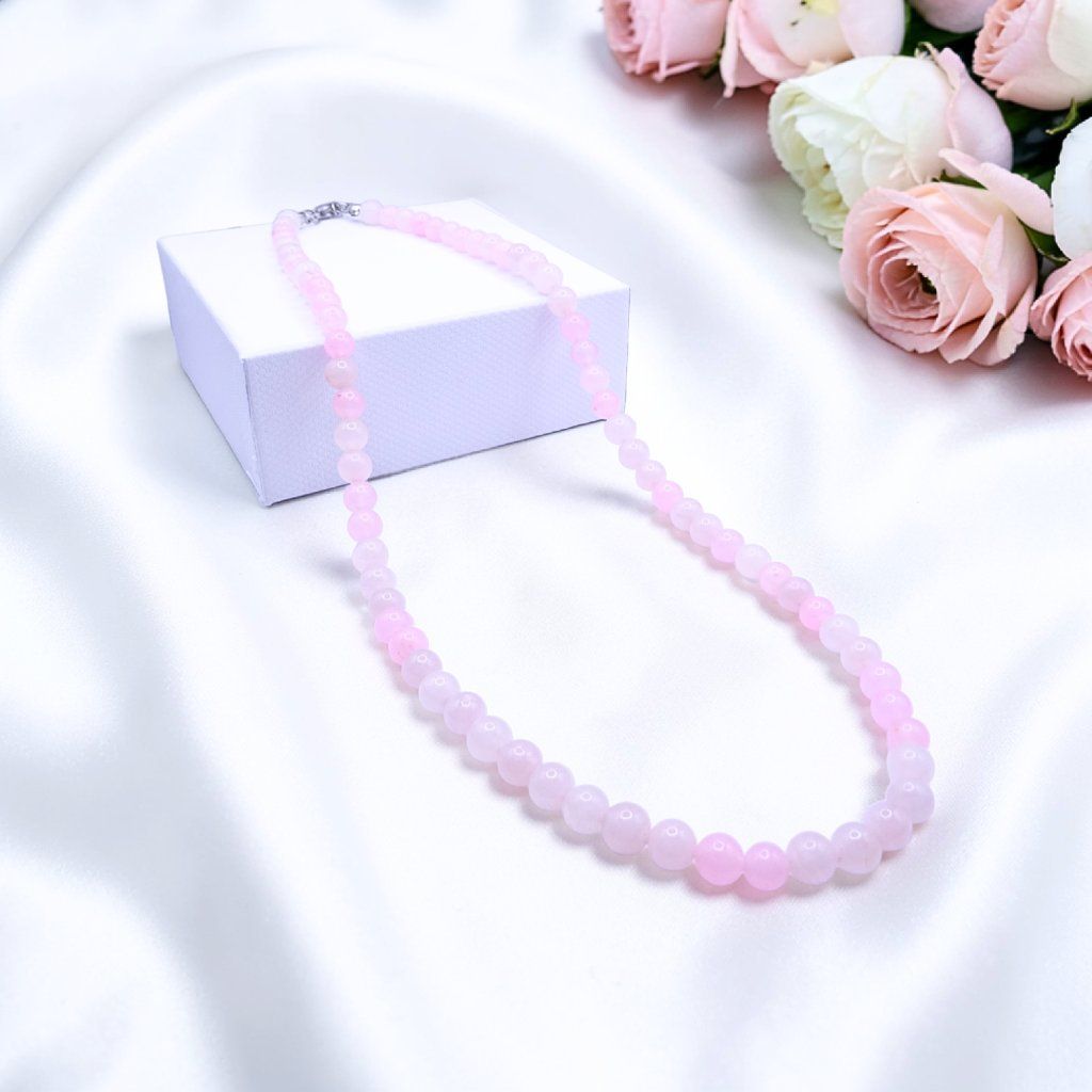 💗 Jemný, ženský a velmi elegantní dámský náhrdelník z růženínu okouzlí svou něžnou světle růžovou barvou a jemnou, láskyplnou energií ✨