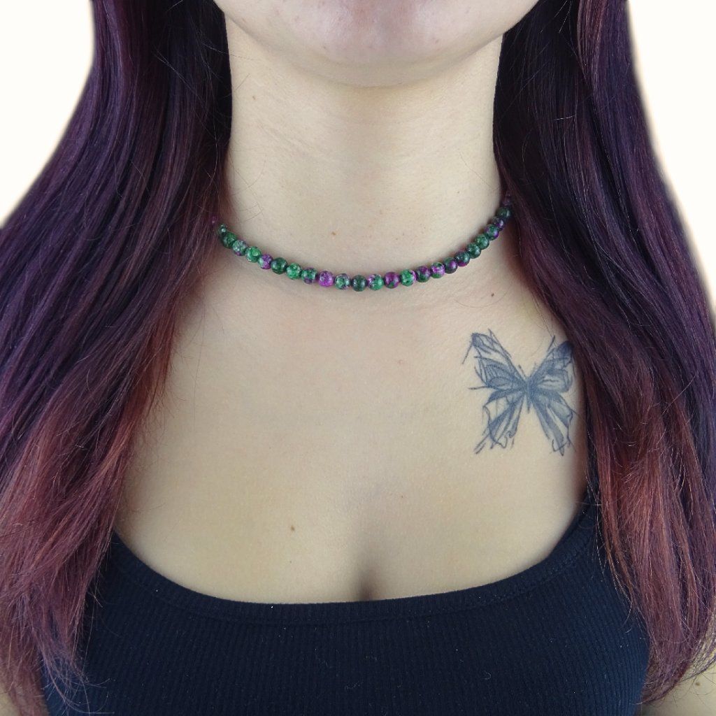 💚 Jemný, ženský a velmi elegantní dámský náhrdelník z rubínu v zoisitu zaujme svou výjimečnou kombinací sytě zelené a růžovo-rubínové barvy, která působí živě, harmonicky a originálně ✨