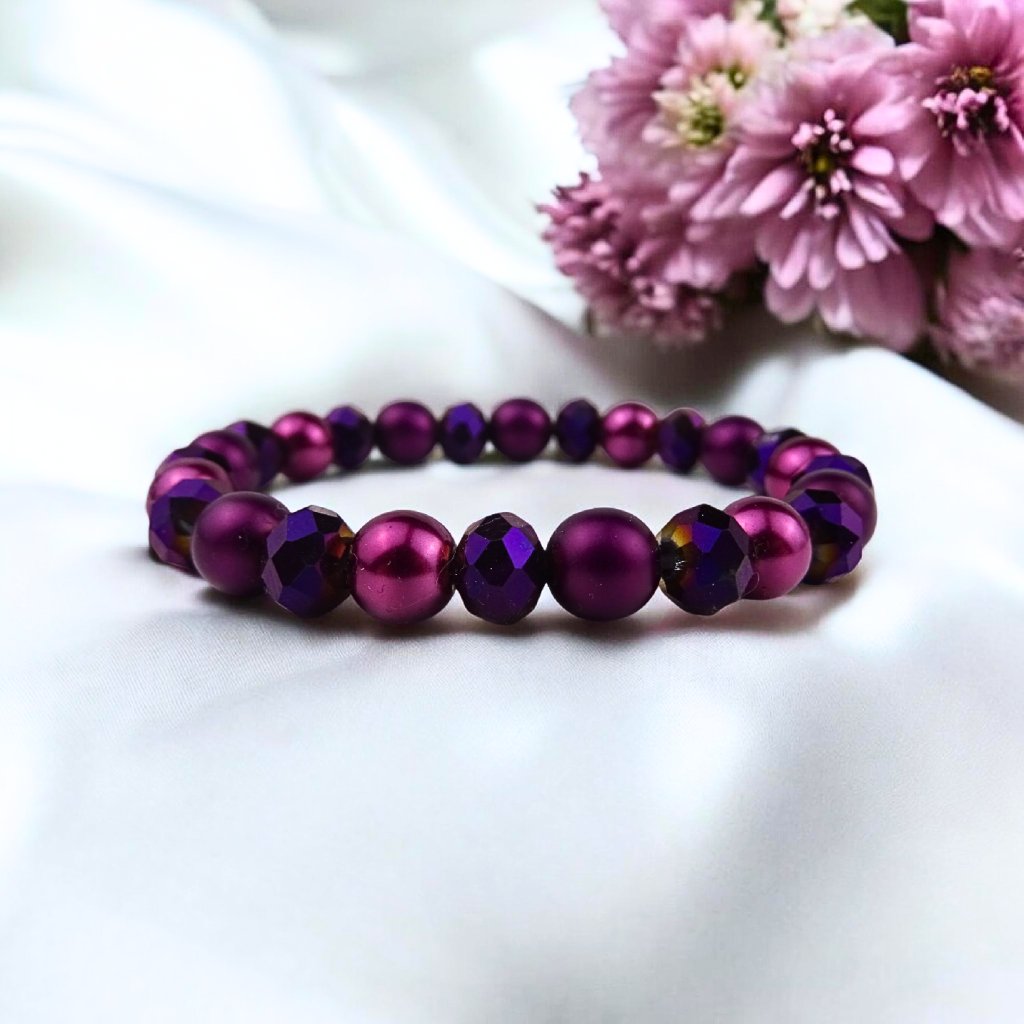 Dámský náramek Bordo z kolekce PRETTY, vyrobený z kvalitního jabloneckého skla, okouzlí svou bohatou kombinací broušených korálků a perliček v nádherných odstínech bordové ❤️🍷. Je to výrazný, ale stále jemný doplněk, který dodá outfitu hloubku a luxusní nádech.