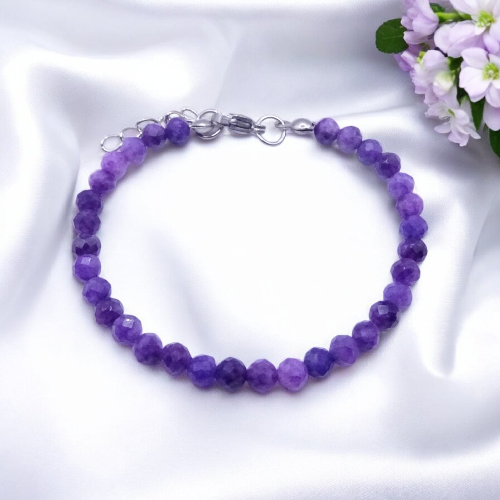 Dámský náramek z fialového chalcedonu – minerální šperk s jemnou elegancí