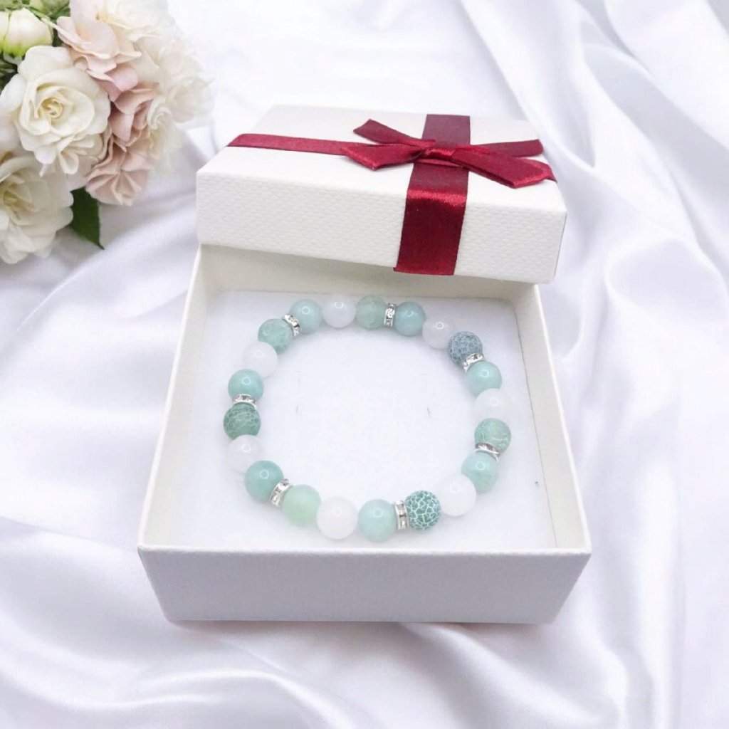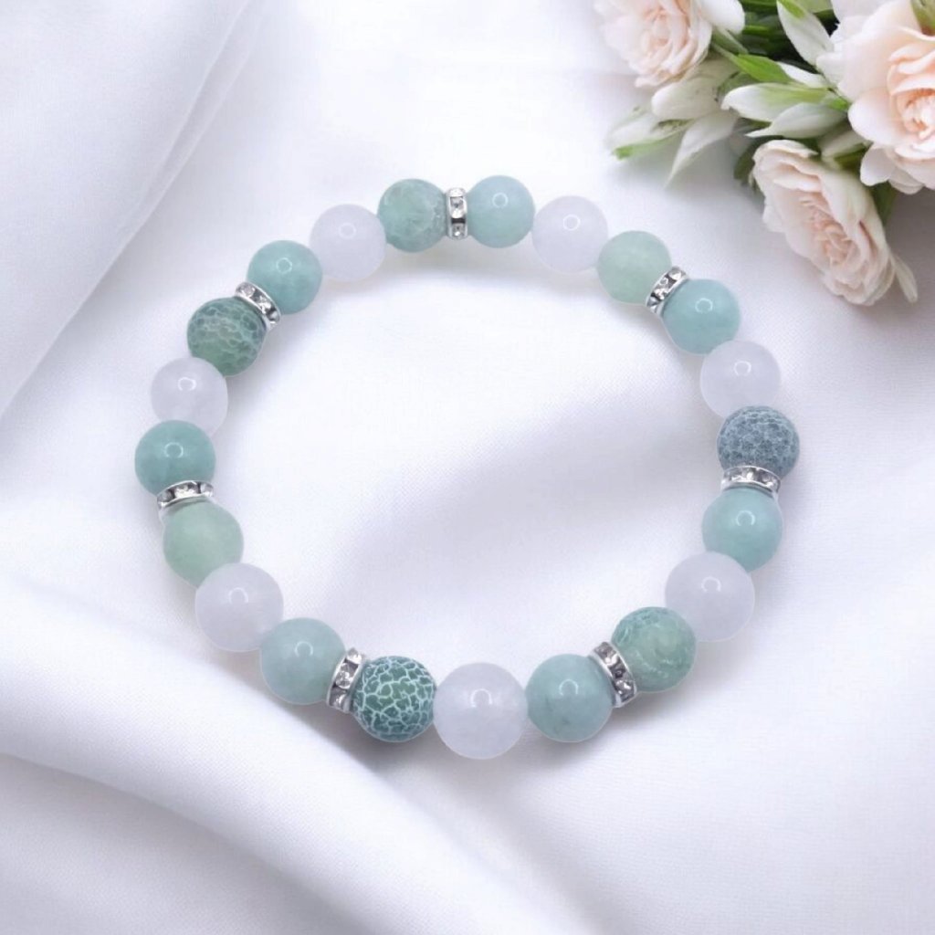 Minerální náramek dámský Křišťál + Achát + Jadeit