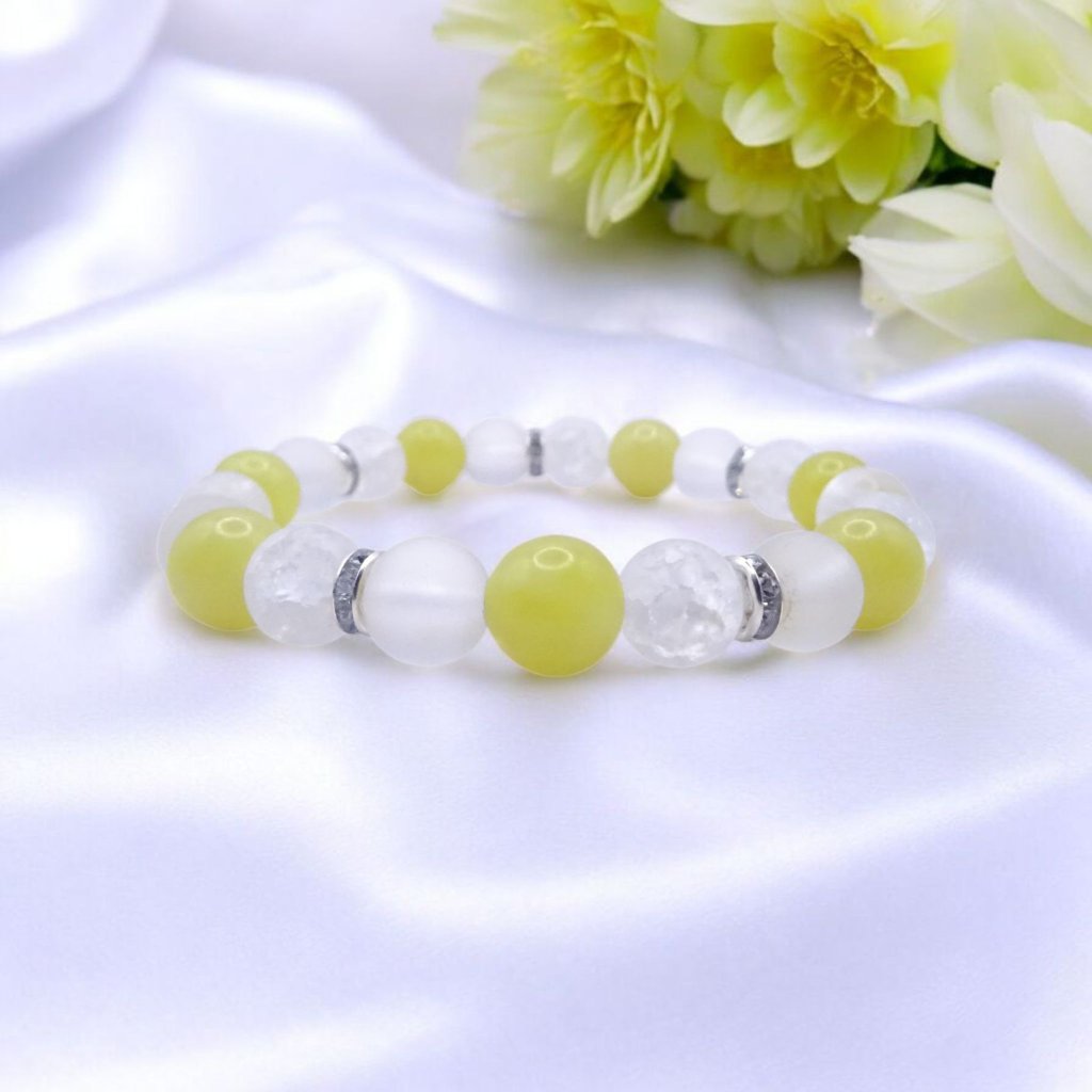 Minerální náramek dámský Křišťál + Citrónový Jadeit