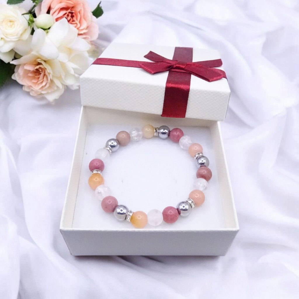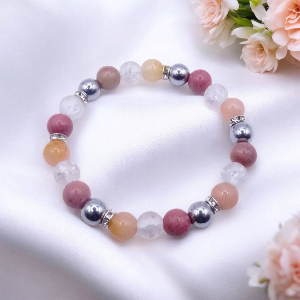 Minerální náramek dámský Opál + Křišťál + Rodonit + Hematit
