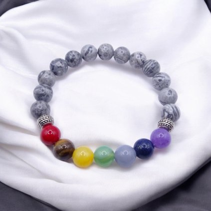 Čakrový náramek harmonizuje energetický systém, posiluje tělo i mysl a pomáhá udržet duševní rovnováhu. Pomáhá: