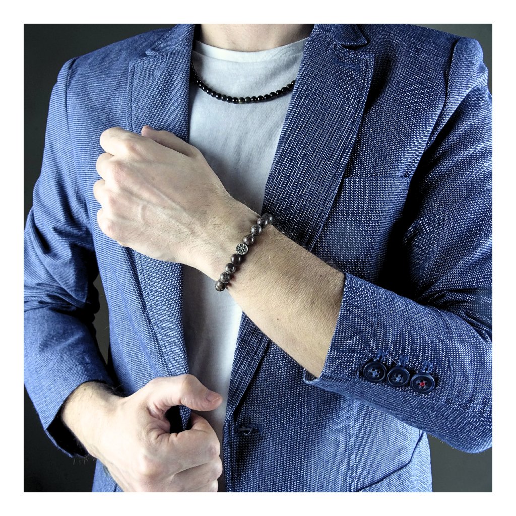 Objevte harmonii přírodních kamenů s tímto elegantním pánským náramkem z hnědého vločkového obsidiánu se symbolem stromu života. Každá korálka (8 mm) je pečlivě navlečená na pevnou dvojitou pruženku, která zajišťuje odolnost, dlouhou životnost a dokonalý tvar náramku. Tento minerální náramek spojuje stylový design s vyrovnávající a ochrannou energií přírodního kamene.