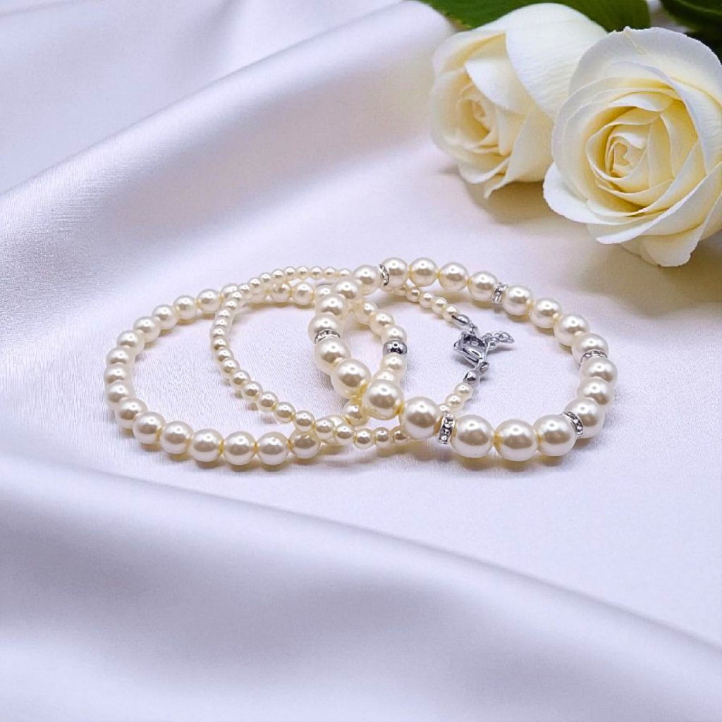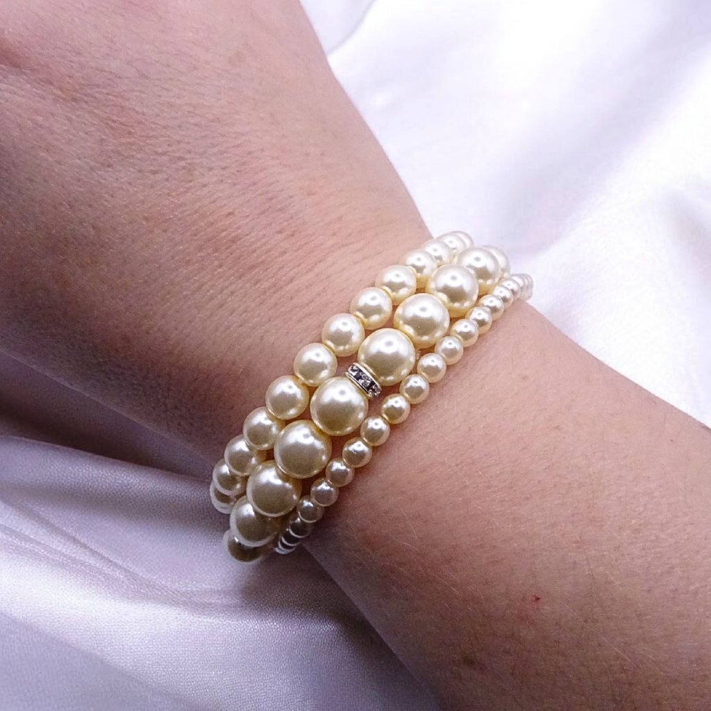 krémové perličkové náramky, vanilkové perličkové náramky, perličková sada náramků, sada krémových náramků, jablonecké perličky náramky, elegantní dámská sada náramků, krémové perličkové náramky s krabičkou, dárková sada náramků, perlové náramky dámské, sada perličkových náramků Jablonec