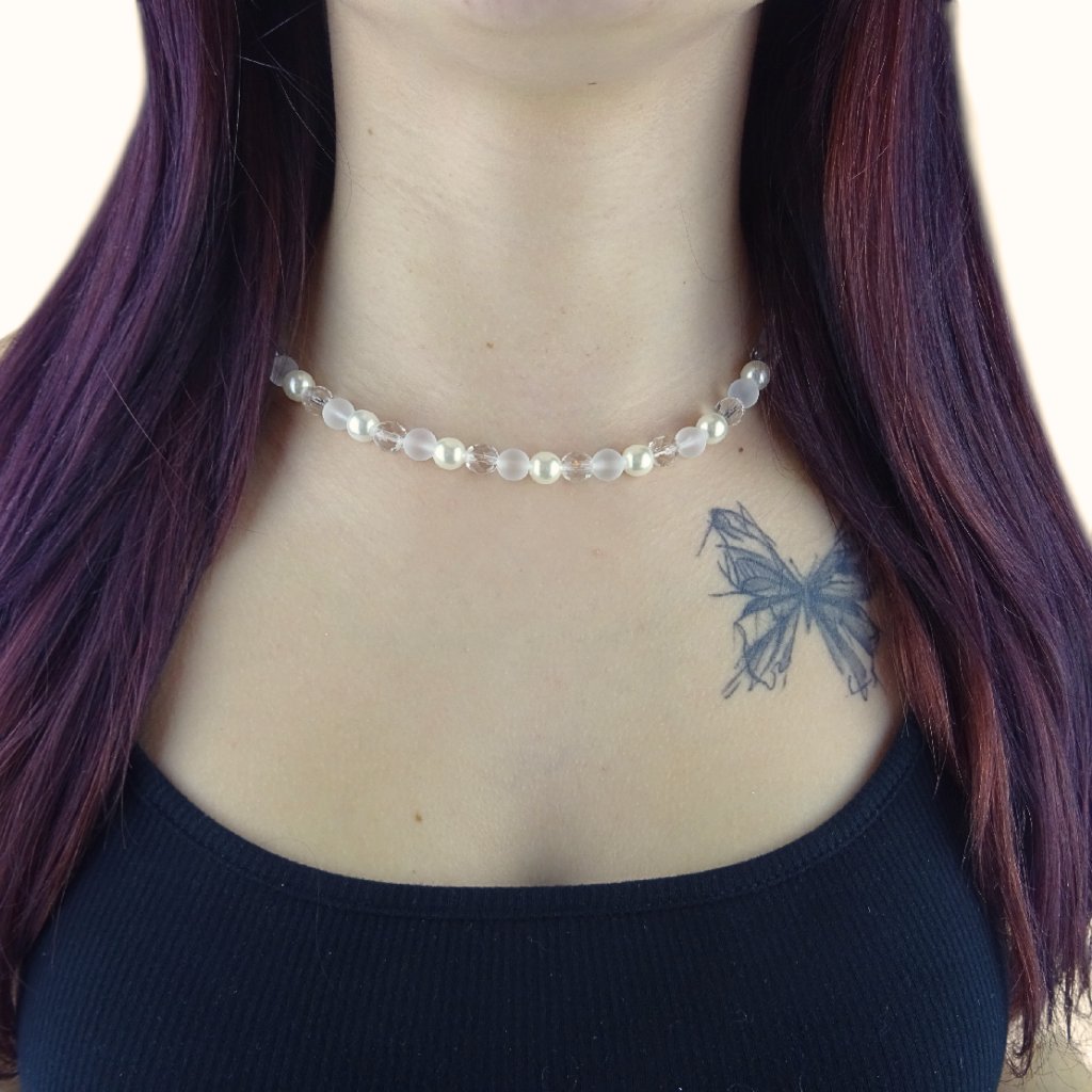 Vďaka ručnej výrobe a použitiu jabloneckého skla sa môže lesk brúsených korálikov, mat krištáľových detailov aj tón bielej jemne líšiť, čo dodáva šperku jedinečný a osobitý charakter ✨.