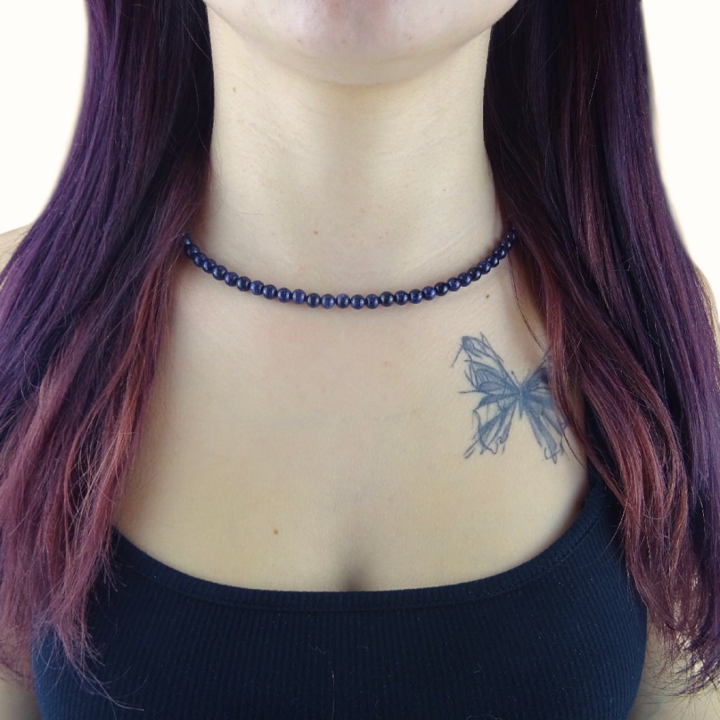 💙 Jemný, ženský a veľmi elegantný dámsky náhrdelník z modrého avanturínu očarí sýto tmavomodrou farbou s drobnými trblietavými bodkami, ktoré pripomínajú nočnú oblohu – preto sa mu hovorí aj Arabská noc ✨