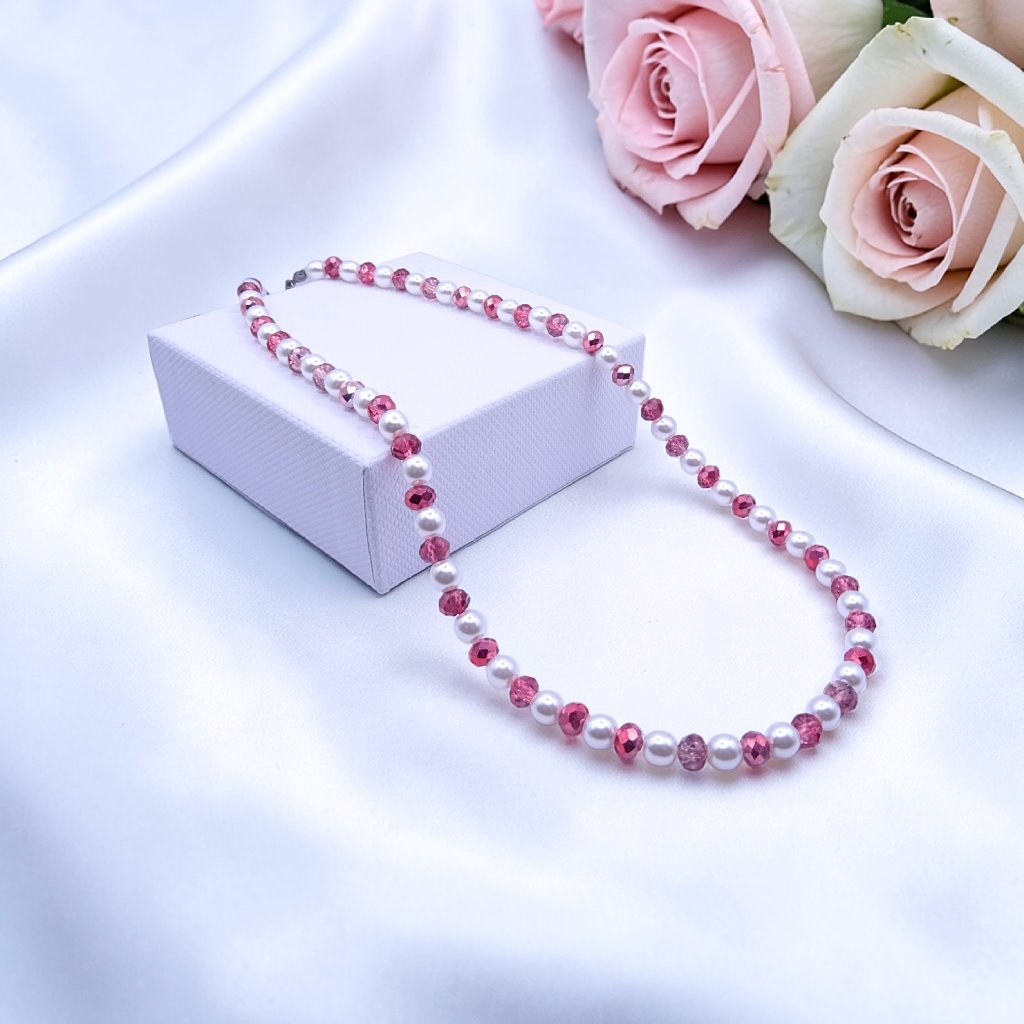Výrazný, elegantný a veľmi ženský dámsky náhrdelník RUBY LOVE zaujme svojou zmyselnou farebnou kombináciou, ktorá pôsobí luxusne a neprehliadnuteľne ❤️🤍. Spojenie bielych perličiek a červených brúsených korálok vytvára harmonický šperk, ktorý vyžaruje energiu, eleganciu a nadčasovú ženskosť.