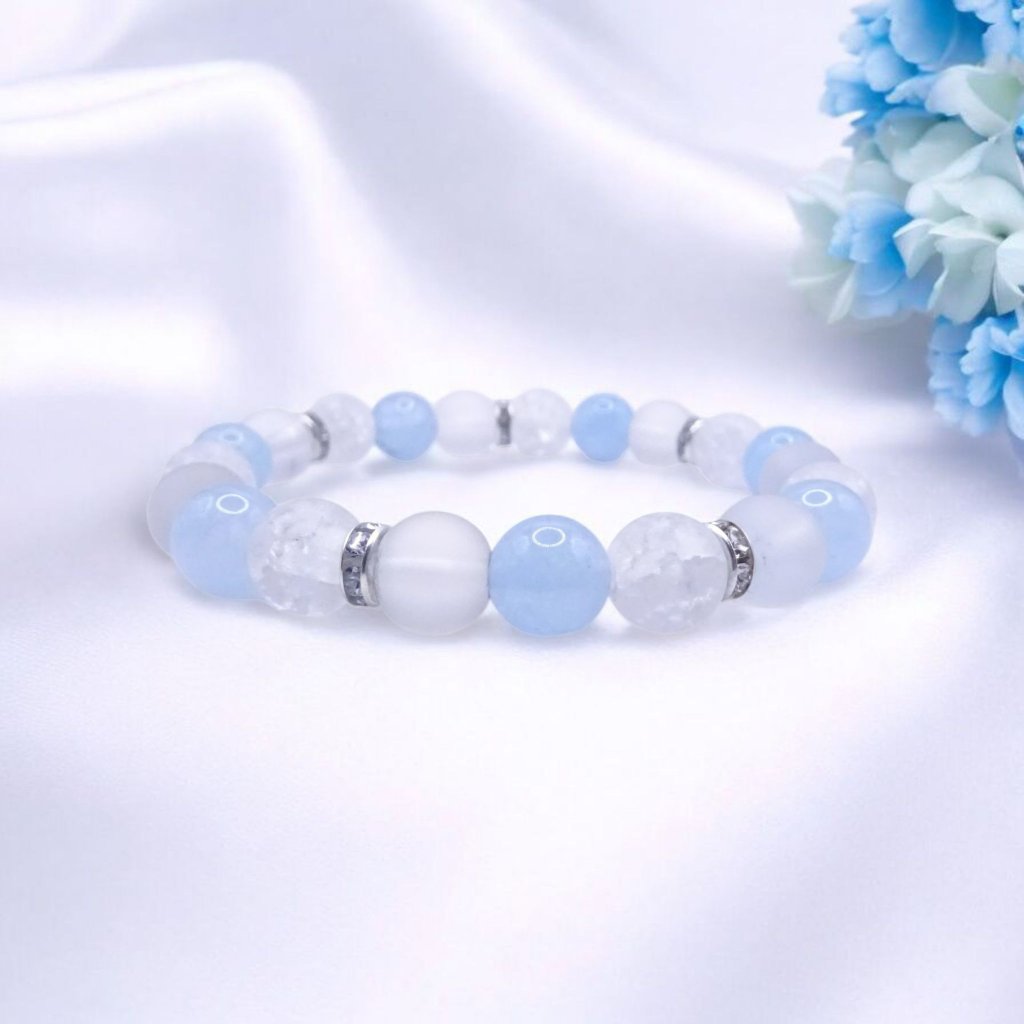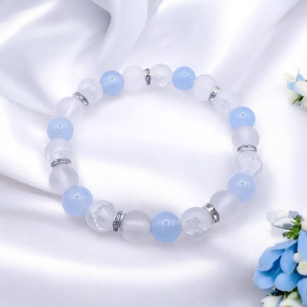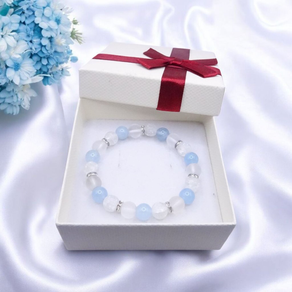 Minerálny náramok dámsky Akvamarín + Krištáľ