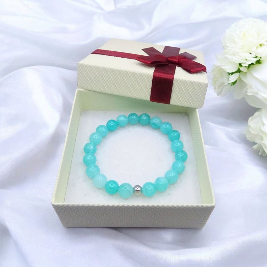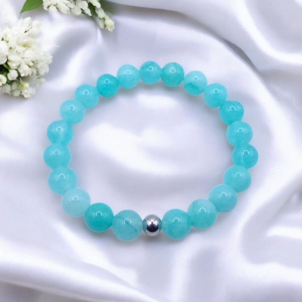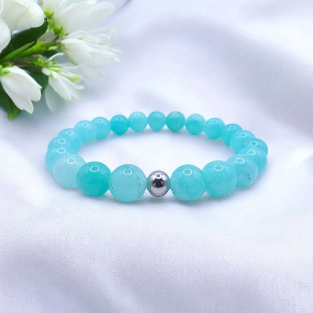 Objavte krásu a silu minerálneho náramku z amazonitu 8 mm, ktorý nielen elegantne zvýrazní vaše zápästie, ale prináša aj duševný pokoj, rovnováhu a pocit bezpečia. Náramok je navlečený na dvojitej pruženke, vďaka čomu sa nevytiahne a pekne drží tvar.