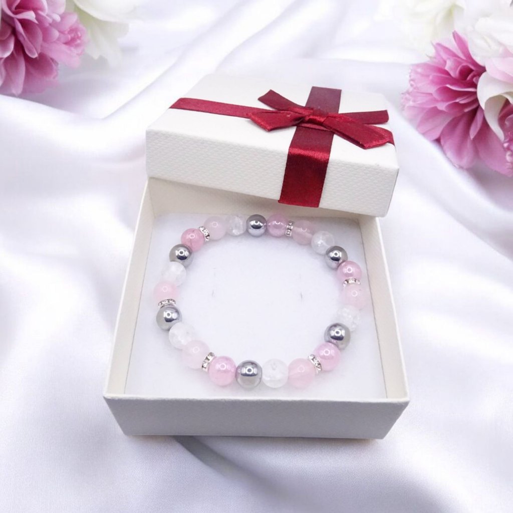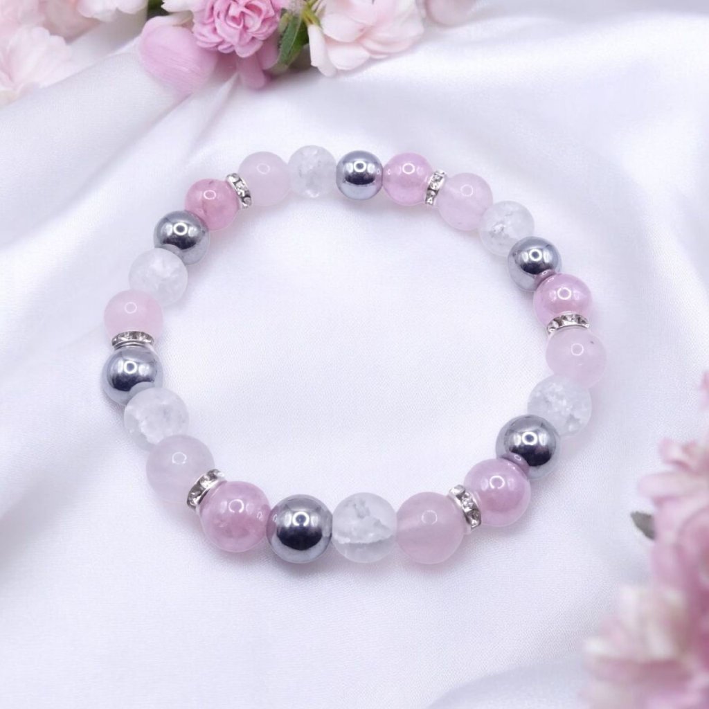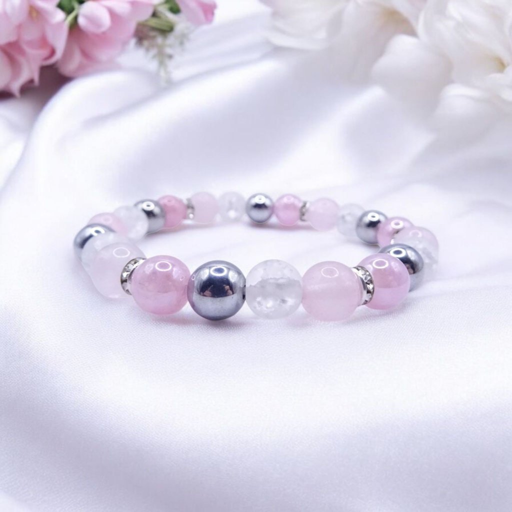 Minerálny náramok dámsky Hematit + Angelit + Krištáľl + Ruženín