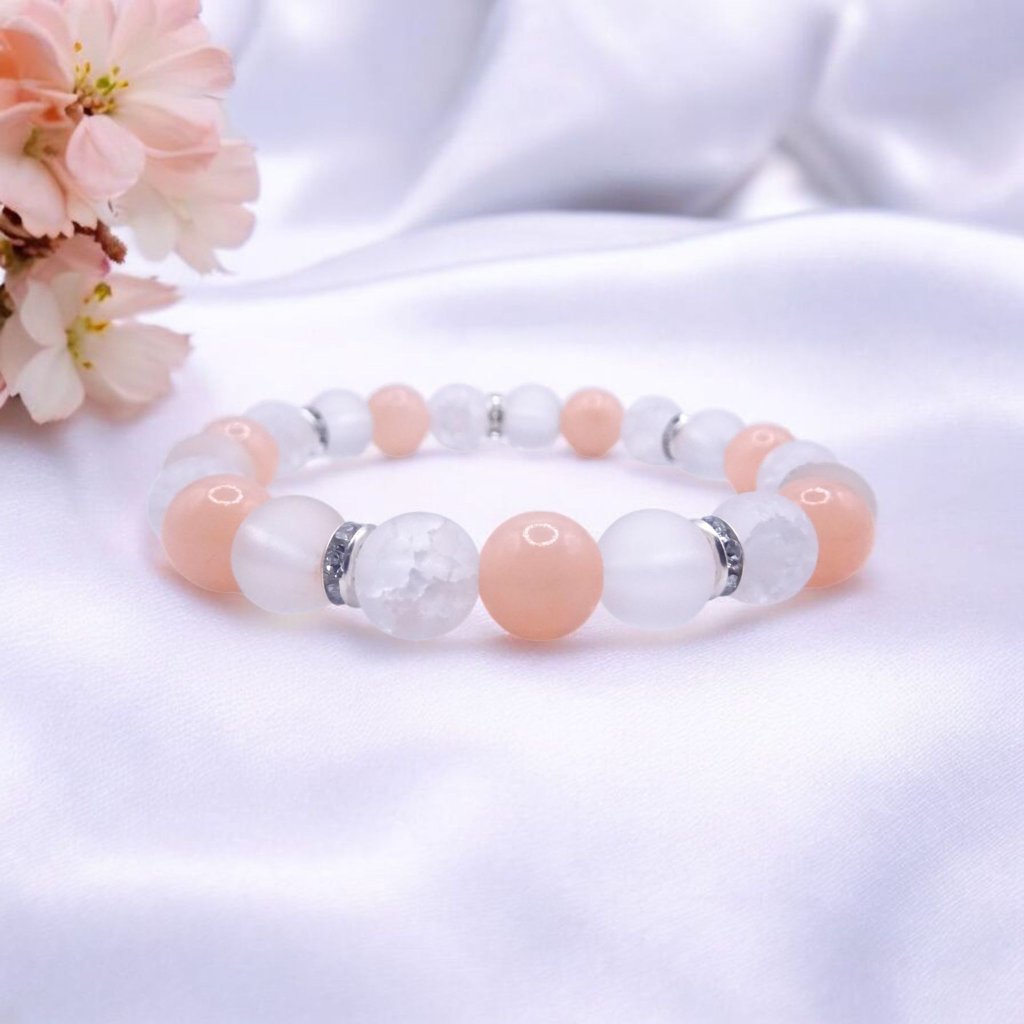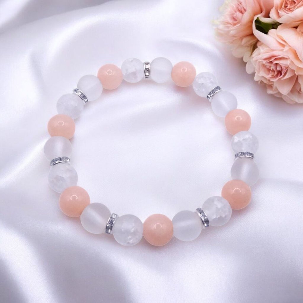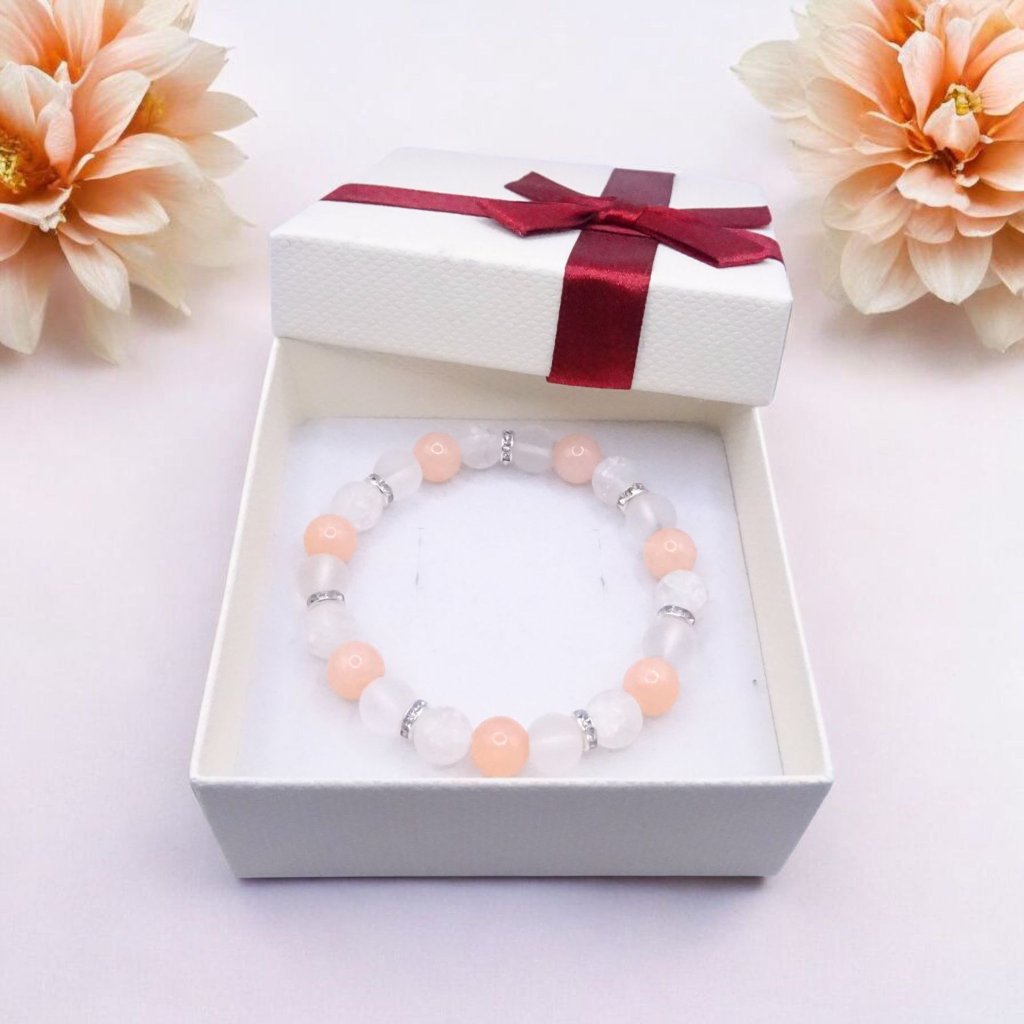 Minerálny náramok dámsky Krištáľ + Oranžový Jadeit