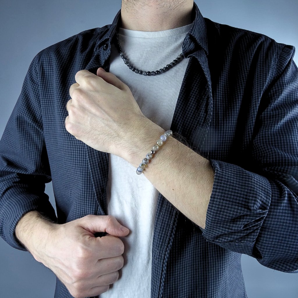 pánsky náramok z dračieho achátu, minerálny náramok, náramok z prírodných kameňov, ochranný náramok pre mužov, náramok pre odvahu, energetický náramok, náramok pre rovnováhu, darčekový pánsky náramok